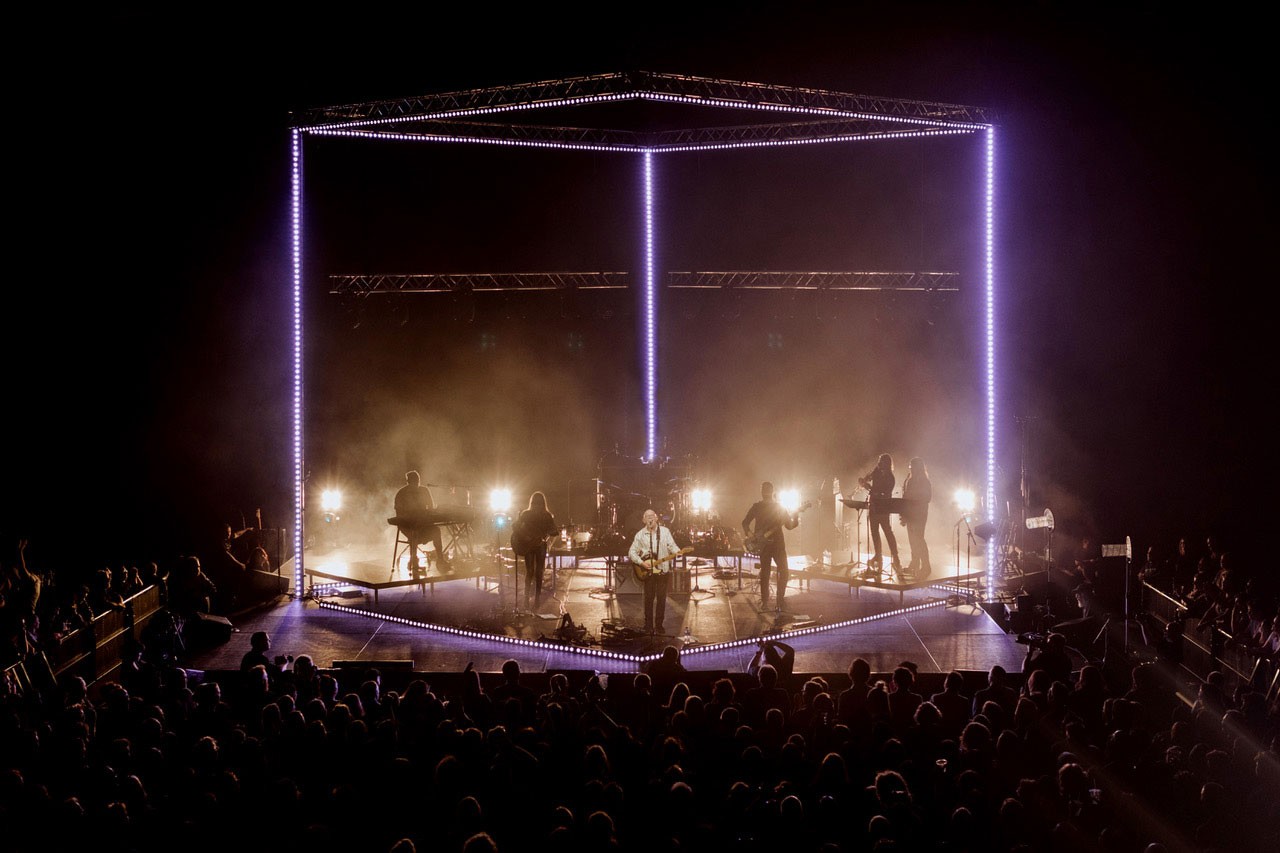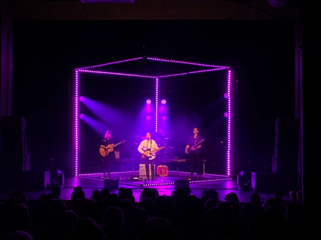 Asked to design a set and light show for Dave Dobbyn’s first NZ tour since the pandemic stopped touring in NZ I wanted to do something that was out of the box in terms of design …. Then I thought, actually, a box is a good idea. We built a cube for the band to live inside with one corner open to the audience. All sides of the cube were lines with LED batons that was then mapped to play down video. The simple set gave us plenty of options for different looks trough out the show and was reasonably contained in terms of the fixture count. The regional tour cube was 4m and the larger stadium cube 7m.